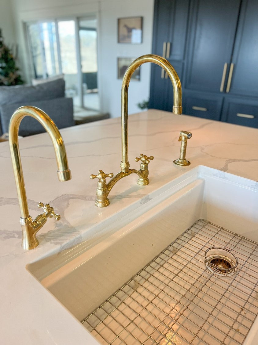 Unlacquered Brass Kitchen Bridge Faucet With Or Without Side Sprayer